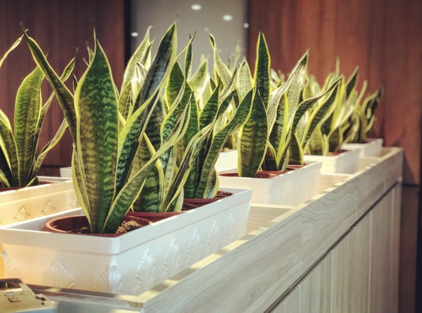 虎尾蘭葉片筆直挺立,表面帶有蛇紋般的線條,有些品種還帶有金邊。虎尾蘭最大的優點就是幾乎不用照顧,不怕乾、也能適應低光,還能有效淨化空氣中的有害物質,是忙碌現代人的好植友。擺在臥室、浴室或光線不足的走道角落都能活得很好,被譽為不死植物的代表,是懶人養植的不二選擇。